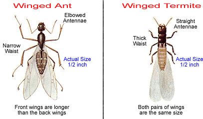 Sometimes termites are mistaken for flying ants. The picture below will help you distinguish the difference between the two. |